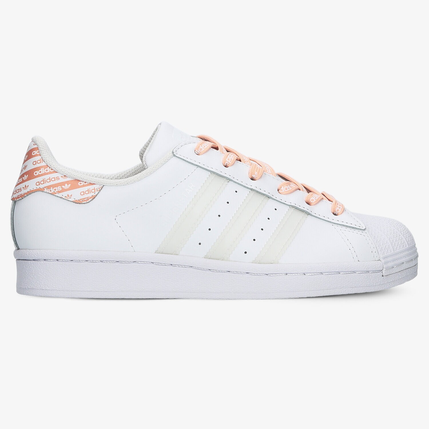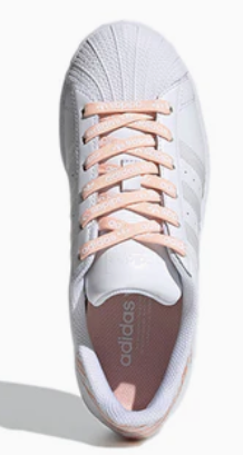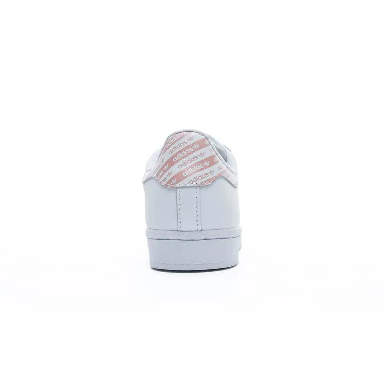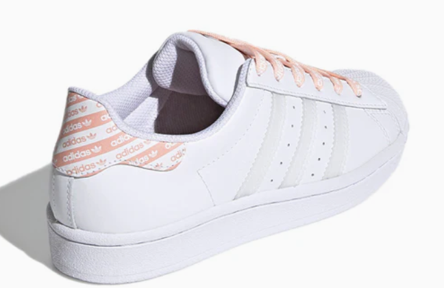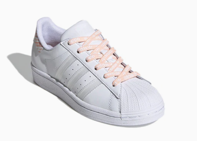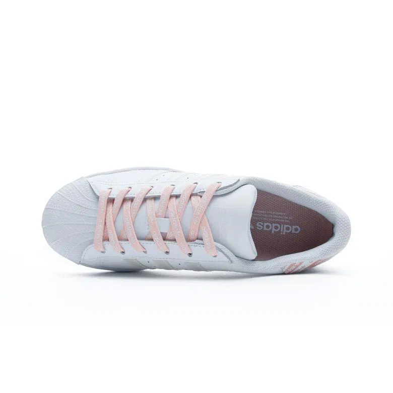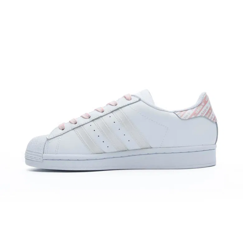 👟 Zapatillas adidas Superstar J FV3761 blancas con detalles clásicos en rosa brillante, perfectas para niñas y mujeres jóvenes que buscan estilo y funcionalidad.
