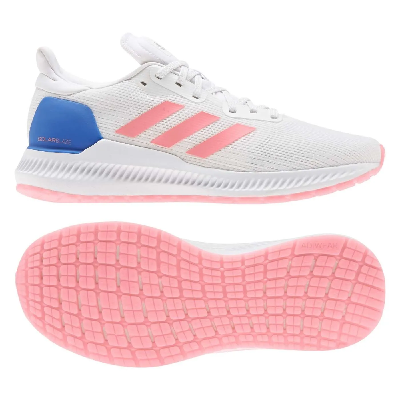 Adidas Solar Blaze W Mujer EE4241 Talla 36 2/3 | Zapatillas blancas con rosa y azul ligeras, cómodas y transpirables para running y gimnasio