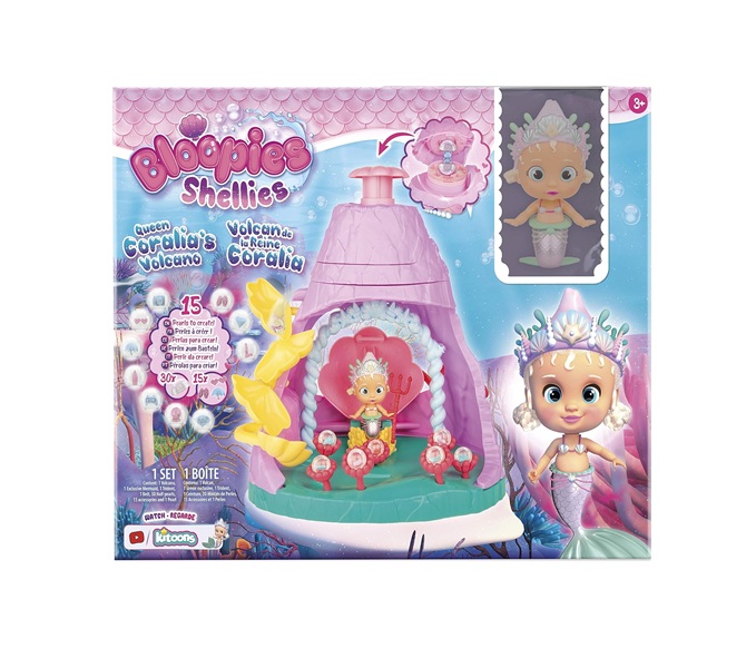 Descubre el volcán mágico de Coralia, la reina del mundo submarino de las Shellies. Este set de juego permite a las niñas crear perlas brillantes con accesorios ocultos y vivir aventuras mágicas bajo el mar. Con su trono que se abre con agua, el Volcán de Coralia combina fantasía, creatividad y diversión. 🌈