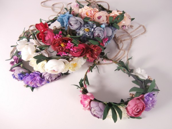 Packs de 12 corones de flores en colores surtidos.