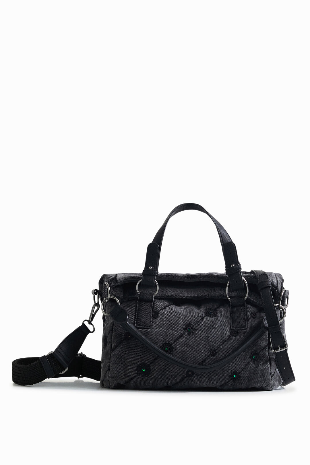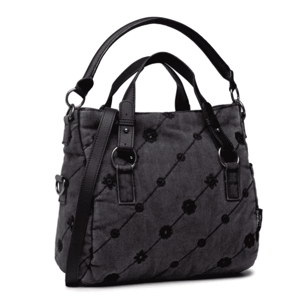 🎨 Bolso Desigual gris denim mujer bordado con pedrería, muy buscado por quienes quieren un bolso original y elegante.