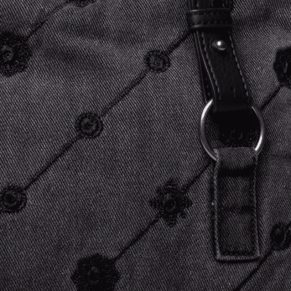 🎨 Estilo denim: El bolso tiene un color gris denim con detalles en rosa y burdeos.