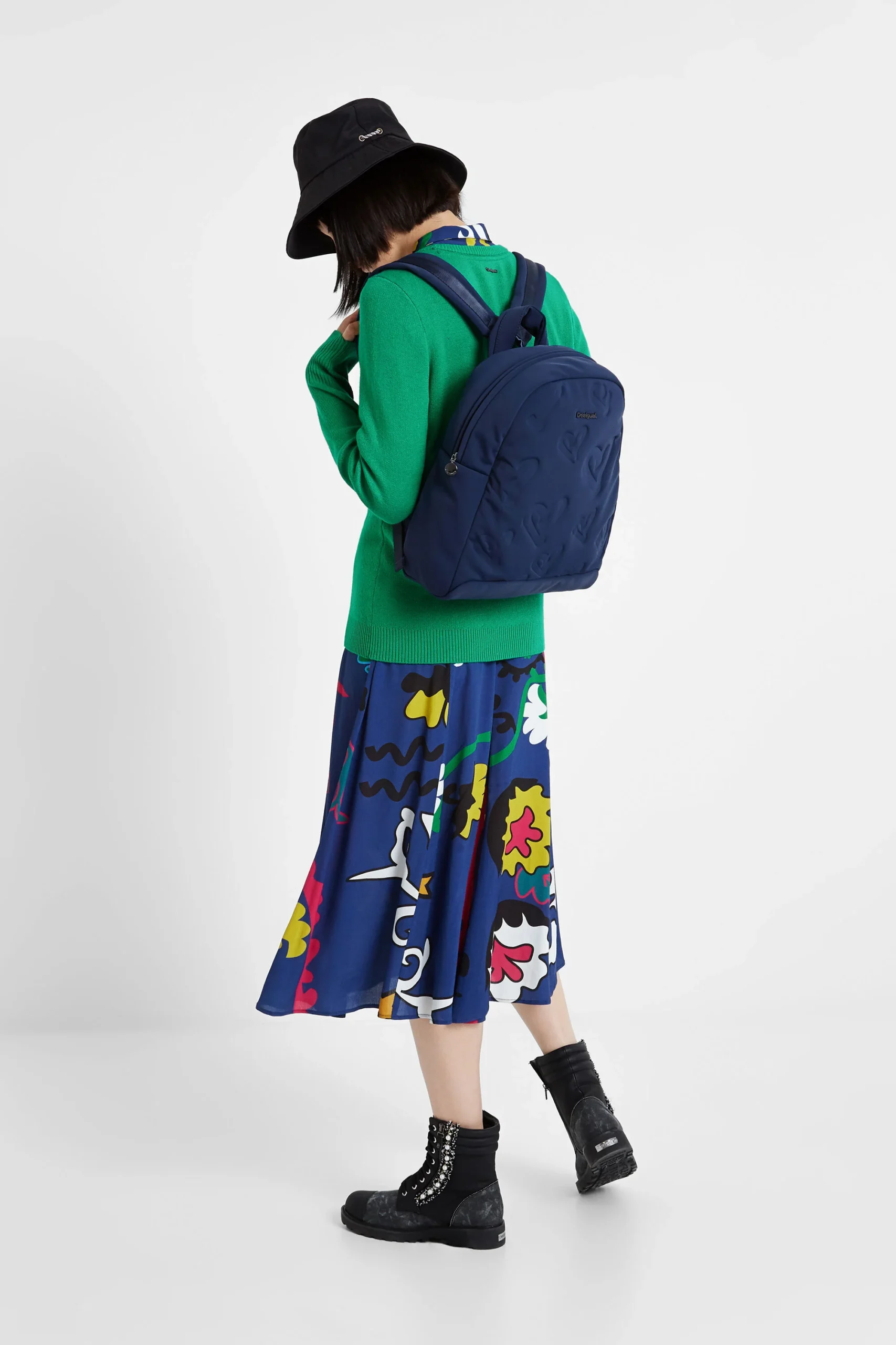 💖 Diseño romántico con corazones grabados a tono, un detalle exclusivo de Desigual que aporta encanto y distinción frente a otras mochilas.