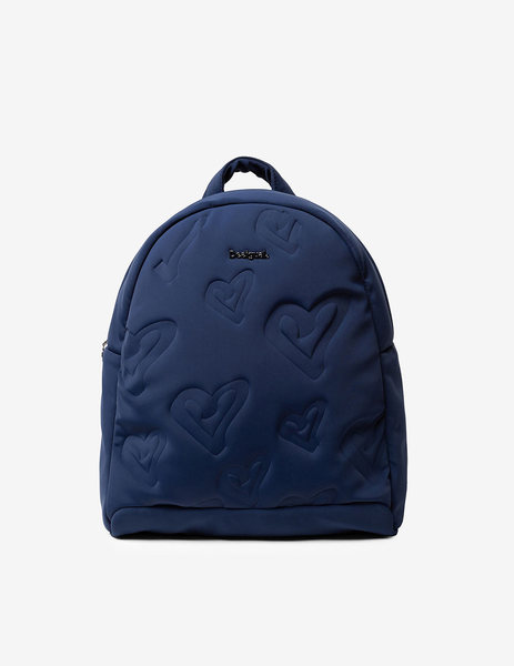 💙 Mochila Desigual Simoneta Venice azul con corazones grabados.