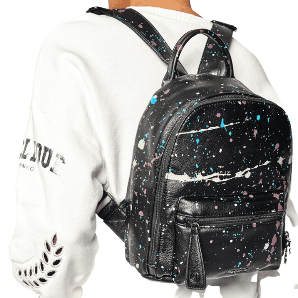 👩🎨 Diseño artístico con manchas multicolor sobre fondo negro, perfecto para quienes quieren un complemento creativo que combine con cualquier look urbano.