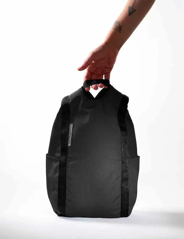Mochila de producción 100% local. Es reversible, así que en un entorno seguro puedes girarla y llevarla con las cremalleras hacia fuera. La anchura de los tirantes acolchados te da máxima comodidad aunque la lleves muy cargada. Tejido repelente al agua.