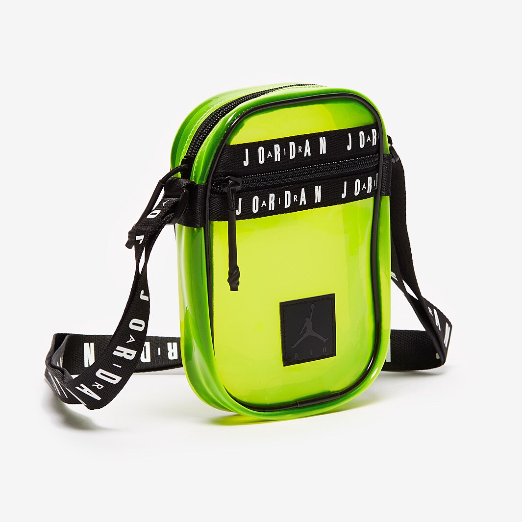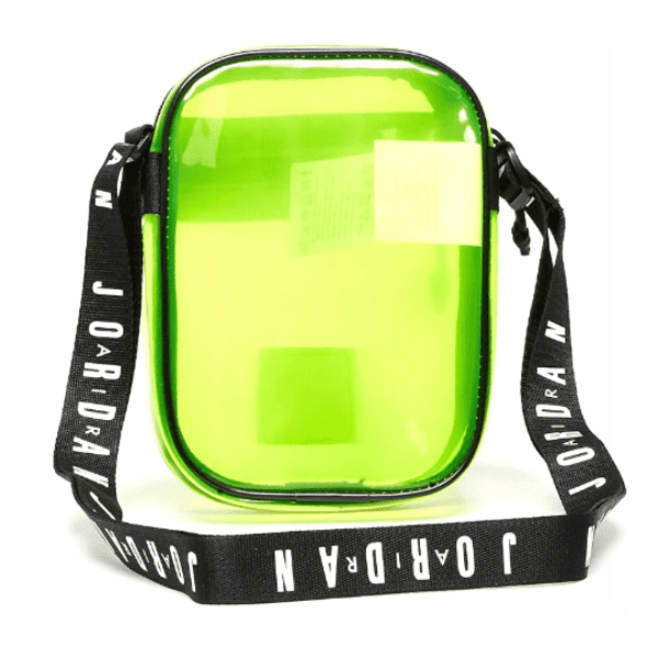 - 🩶 Bolso Jordan amarillo transparente, buscado como “Jordan clear bag yellow” y “sac bandoulière Jordan transparent”.