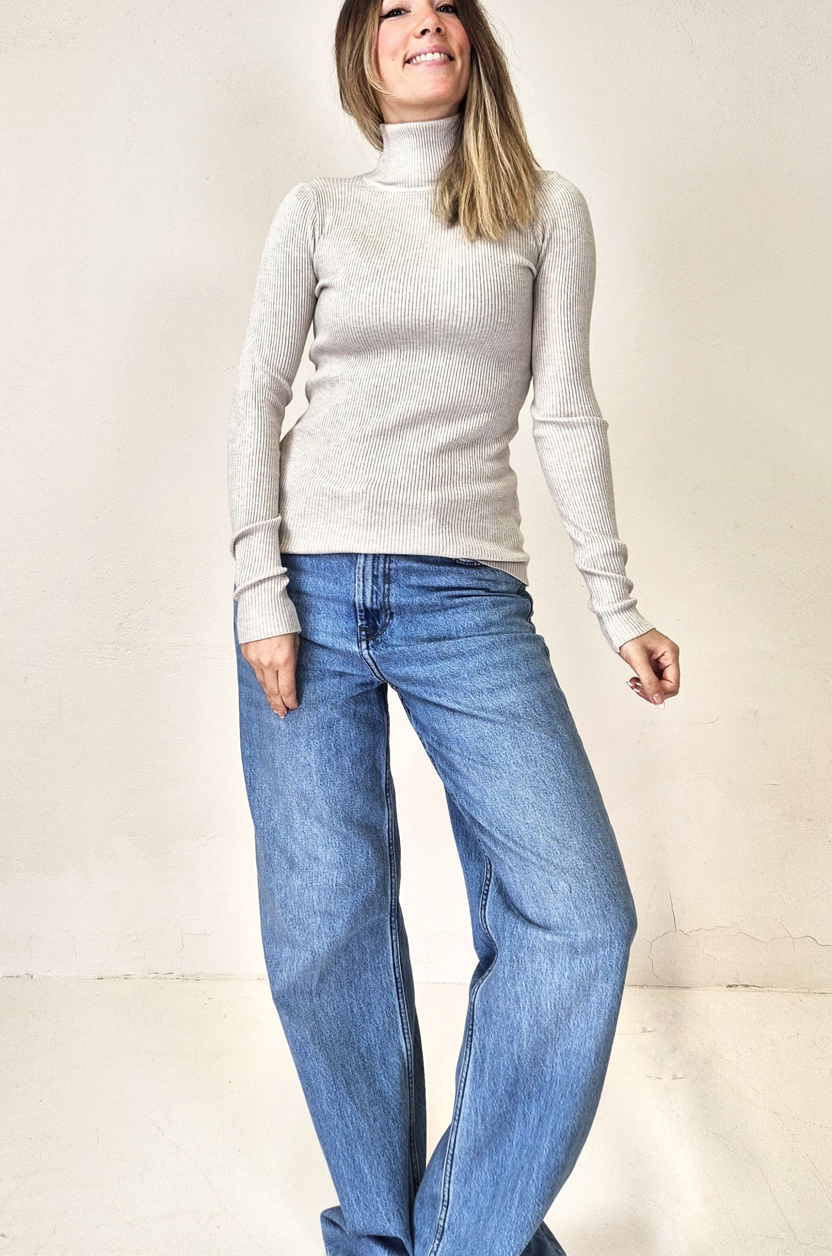 Manga larga y cuello alto.