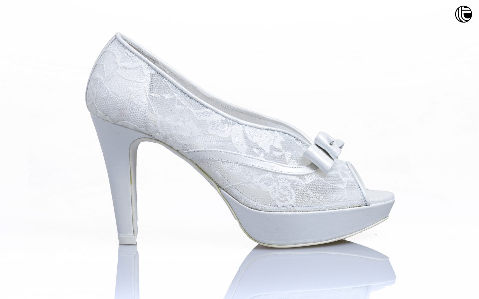 Peep Toe de novia de encaje con lazo en piel by Doriani
