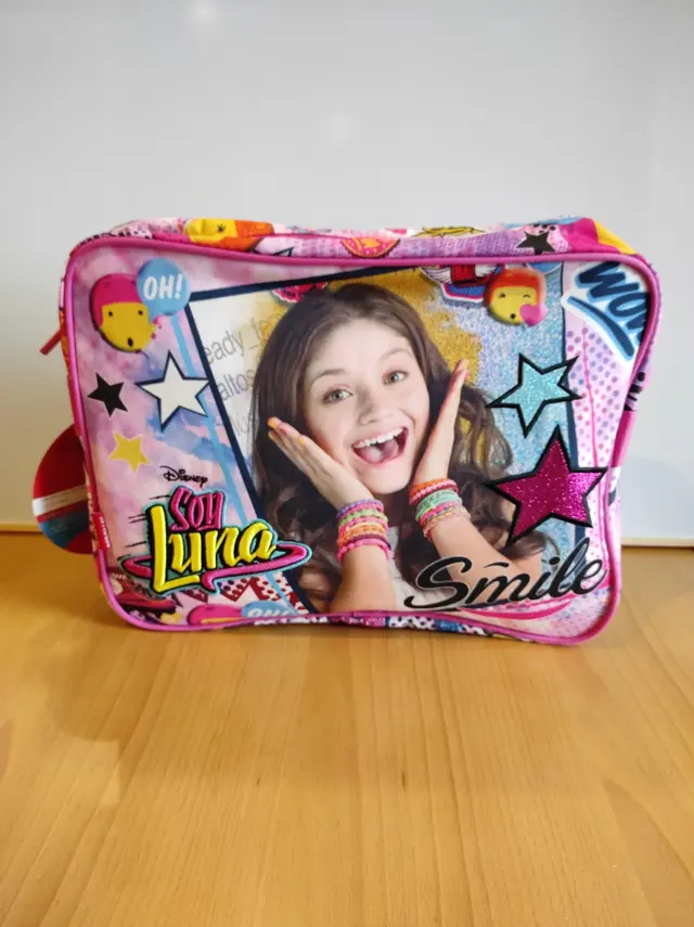 Descubre el bolso bandolera oficial de Soy Luna, la serie que marcó a toda una generación. Un accesorio funcional y adorable con diseño original de Disney, en color rosa fucsia con la imagen de Luna. Ideal para niñas entre 5 y 9 años que quieran llevar sus cosas con estilo y alegría. Es un artículo difícil de encontrar y muy buscado por fans y coleccionistas.